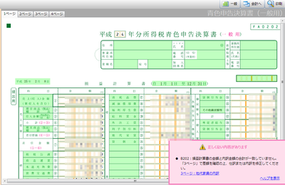 B202:損益計算書の金額と内訳金額の合計が一致していません。